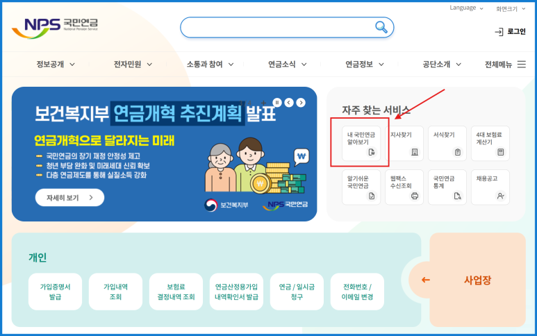 포털 사이트에서 "국민연금공단"을 검색하고, 공식 홈페이지에 접속하세요.
