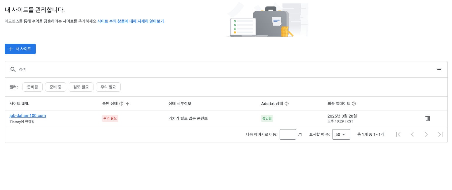 - 도메인 연령: 신규 도메인의 경우 최소 3~6개월 이상 운영하는 것이 좋습니다.