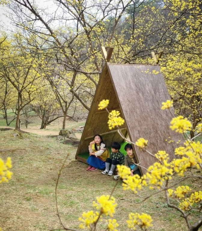 산수유 꽃이 만개한 약 3km의 트레킹 코스를 걸으며 아름다운 경치를 감상할 수 있습니다. 이 구간은 경사가 완만하여 남녀노소 누구나 편하게 걸을 수 있으며, 중간중간 사진 촬영을 위한 포토존도 마련되어 있습니다.