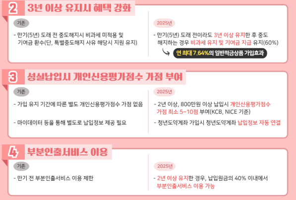 💡 기존에는 중도 해지하면 원금만 돌려받을 수 있었지만, 2025년부터는 유연한 자금 운용이 가능해졌습니다.