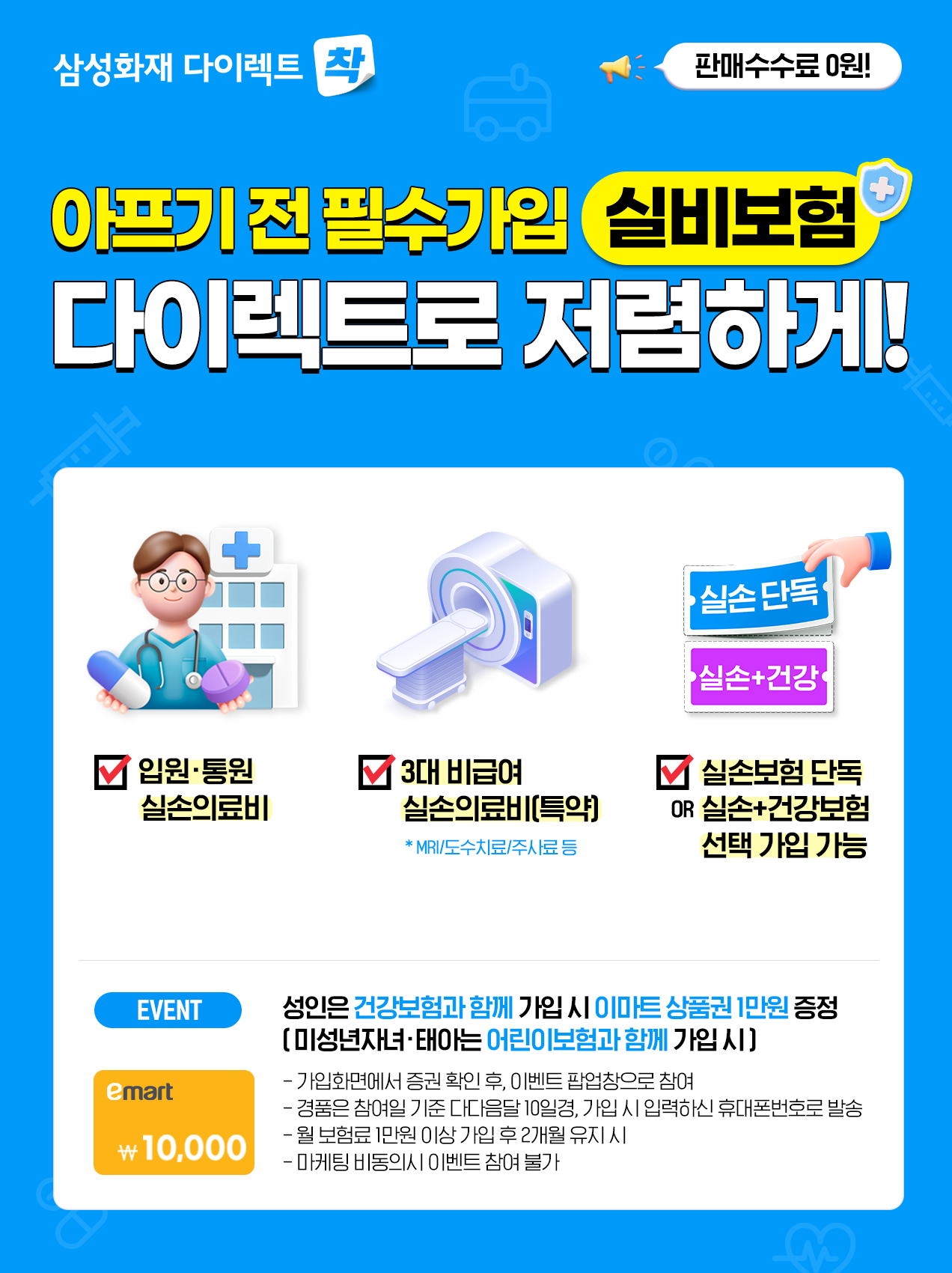 삼성화재 다이렉트 실비보험(실손의료보험)은 의료비 부담을 덜어주는 대표적인 보험 상품으로, 병원 치료 시 본인이 부담해야 하는 비용을 보장받을 수 있습니다. 직접 온라인으로 가입하면 보험료가 저렴하며, 가입 절차도 간편합니다.