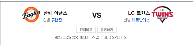 - 엘지 에르난데스: 에르난데스 선수가 선발로 예상됩니다. MLB 통산 20승, 평균자책점 4.22, WHIP 1.26을 기록한 우완 투수로, 싱커, 직구, 슬라이더를 주무기로 사용합니다